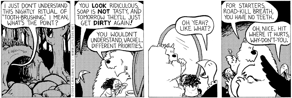 Nah, Vachel revels in his roadkill breath. It is yet another way to annoy the rest of the gang.