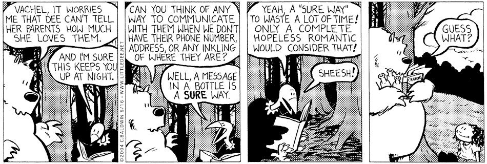 This will also be the first of several messages in a bottle, which is such an endearing kid notion.